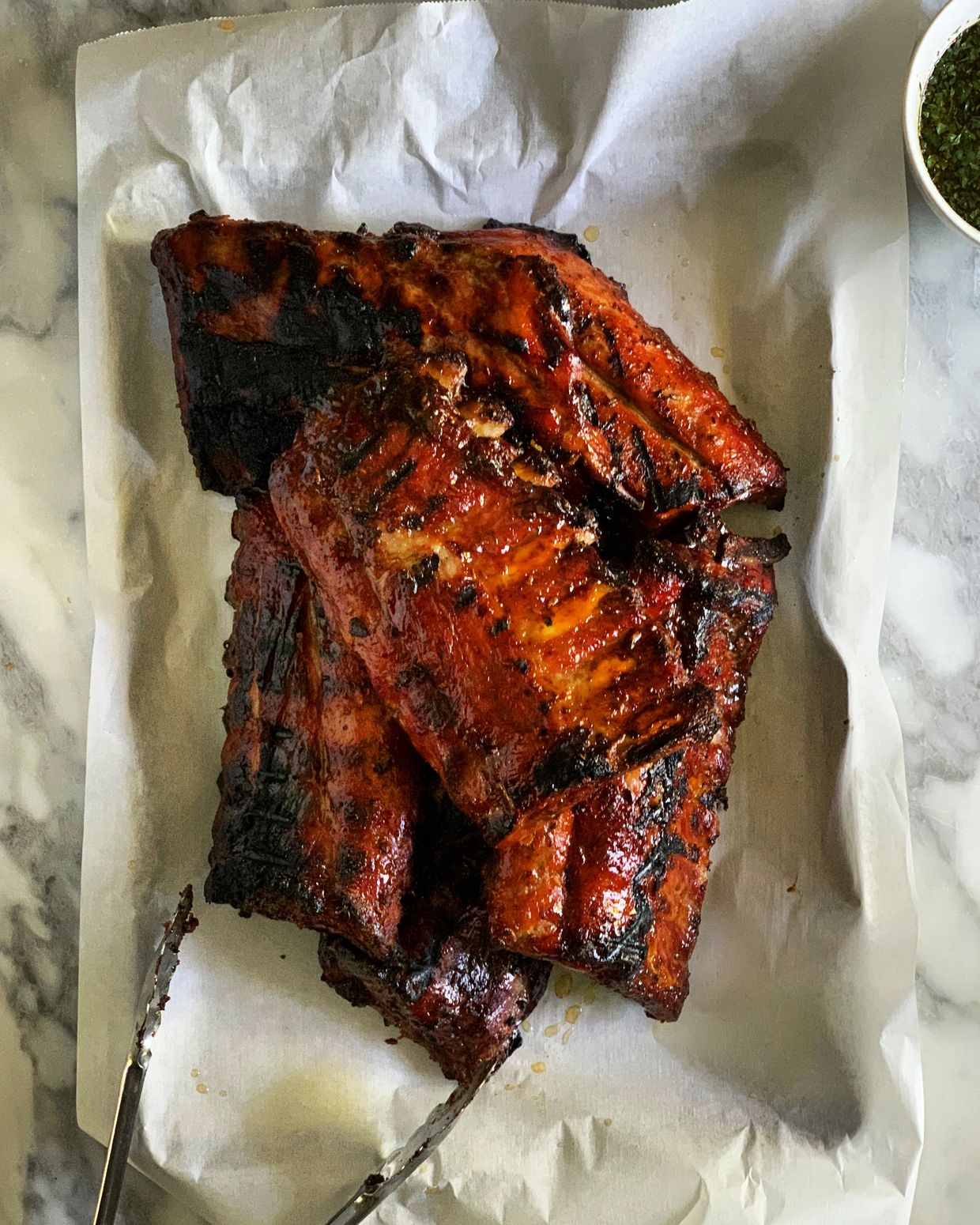 The hardest part: finding a bag big enough for the overnight marinade. A trick is to simply cut the racks in half before tucking them into a gallon zip-lock. (The then 6 pieces fit nicely into 2 bags.)