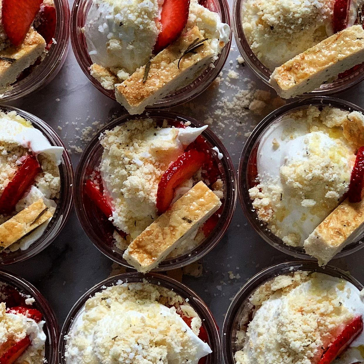 •Begin with a layer of crumbs, then a dollop of whipped, followed by a heaping spoonful of berries. Repeat.