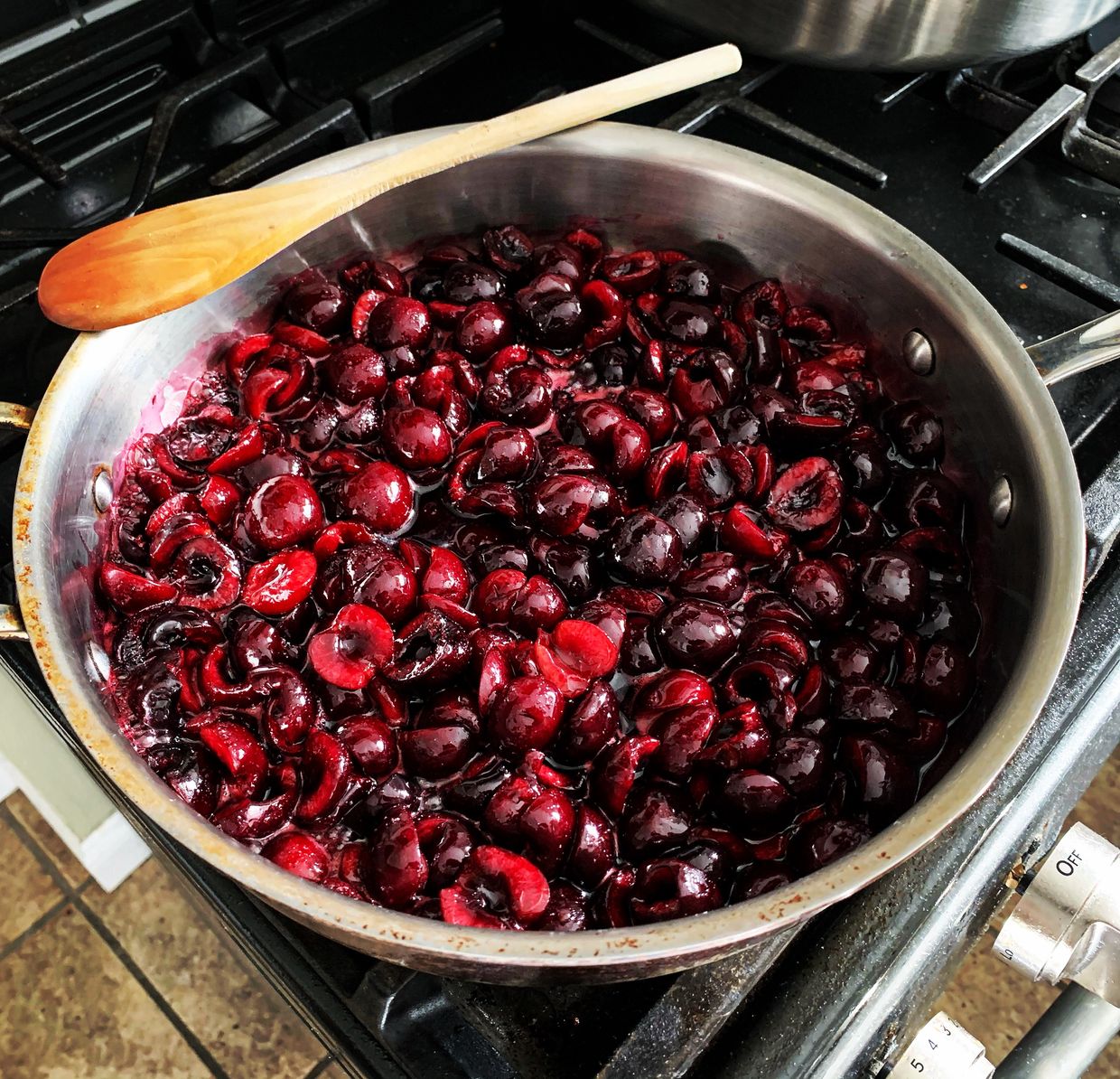 •Reduce the heat to simmer, cook until the cherries are tender, 5-6 mins. (Be sure to not let them overcook, they’ll fall apart.)