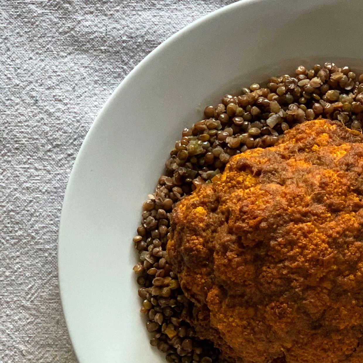 Whole Roasted Cauliflower with Ginger, Turmeric and Cumin