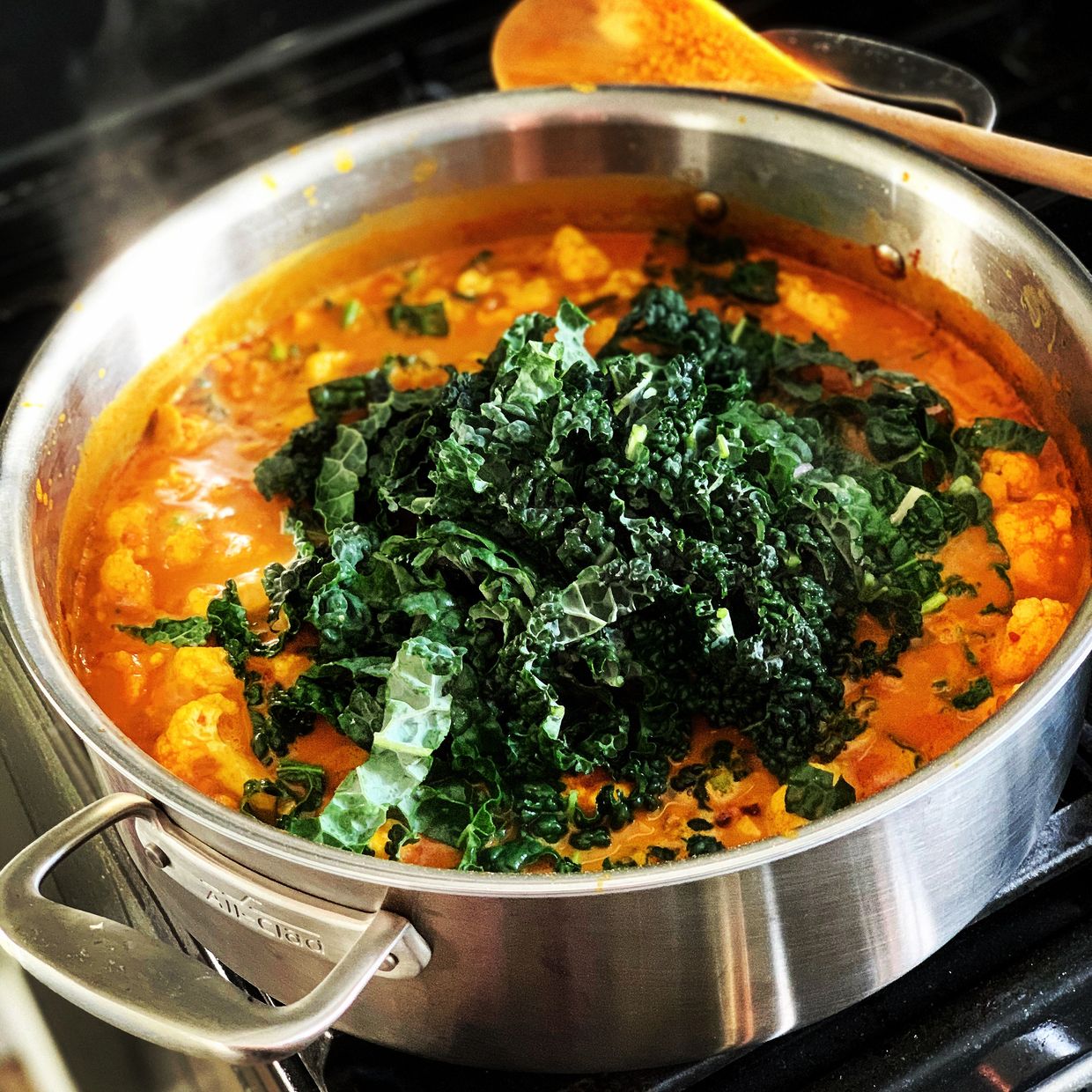 •While cauliflower roasts, place a large saucepan over medium heat and add oil.