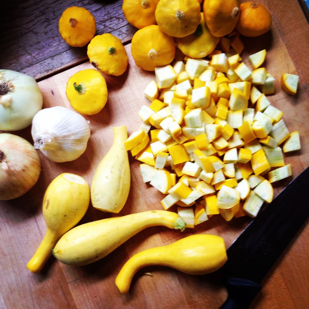 •Then, peel, split and seed squash. Cut into 1”-2” cubes, place in medium mixing bowl, hit with a good drizzle of olive oil, couple-few pinches of salt, lemon zest, toss thoroughly to coat. Place evenly on foil lined rimmed baking sheet, bake about 30 mins. or until easily pierced with pairing knife.